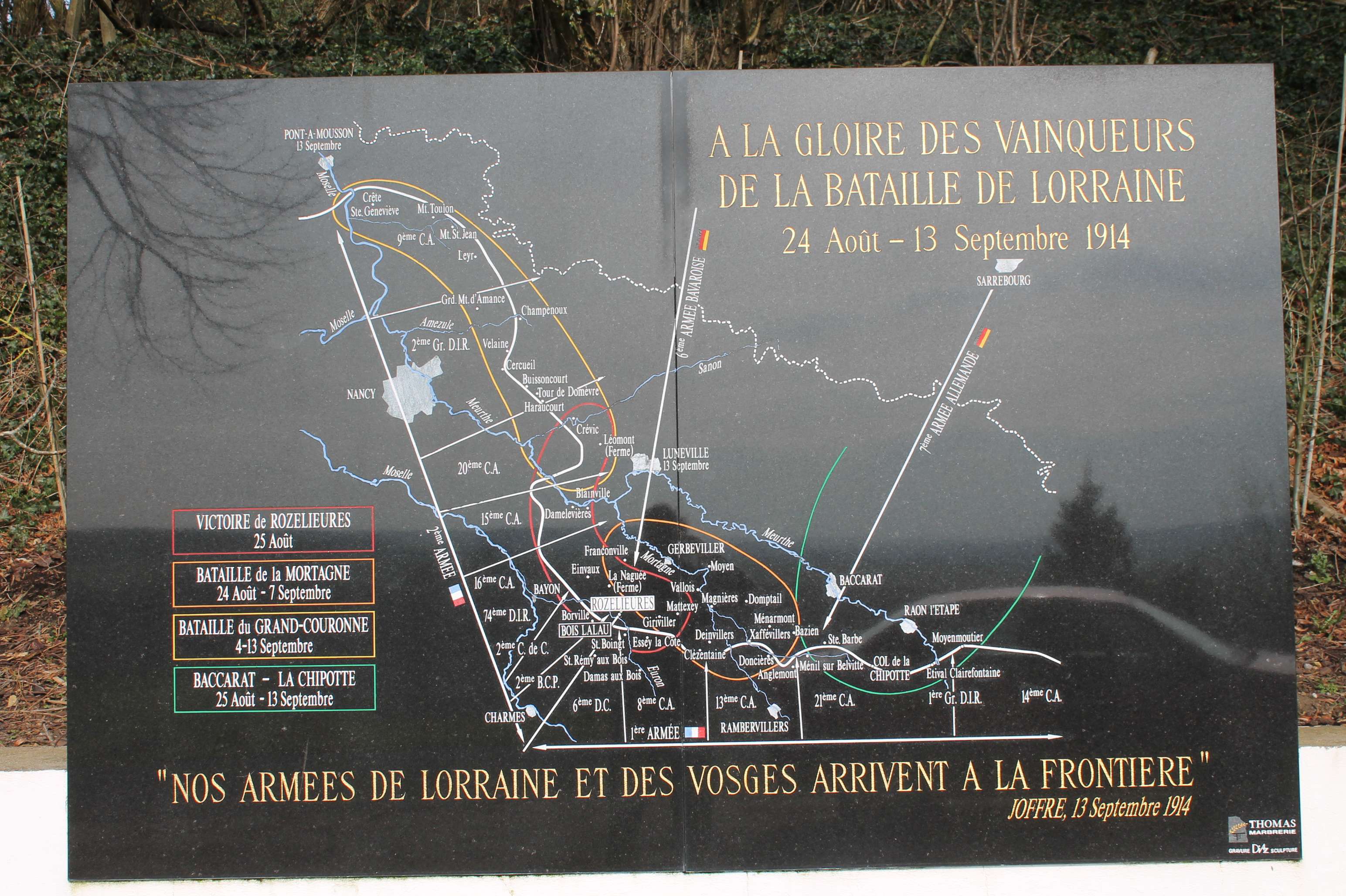 Plaque « A la gloire des vainqueurs de la bataille de Lorraine, 24 août-13 septembre 1914 »